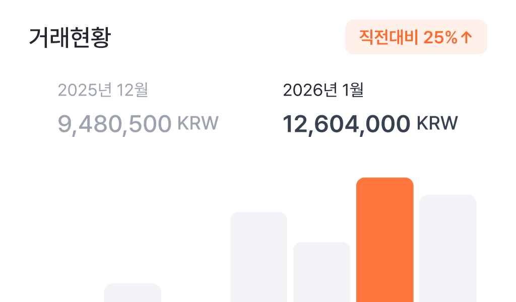 월 순 거래액은 당월 1일 00:00:00 - 당월 말일 23:59:59 까지 발생한 총 거래액에서 동 기간에 발생한 취소/환불액을 제외한 금액입니다.